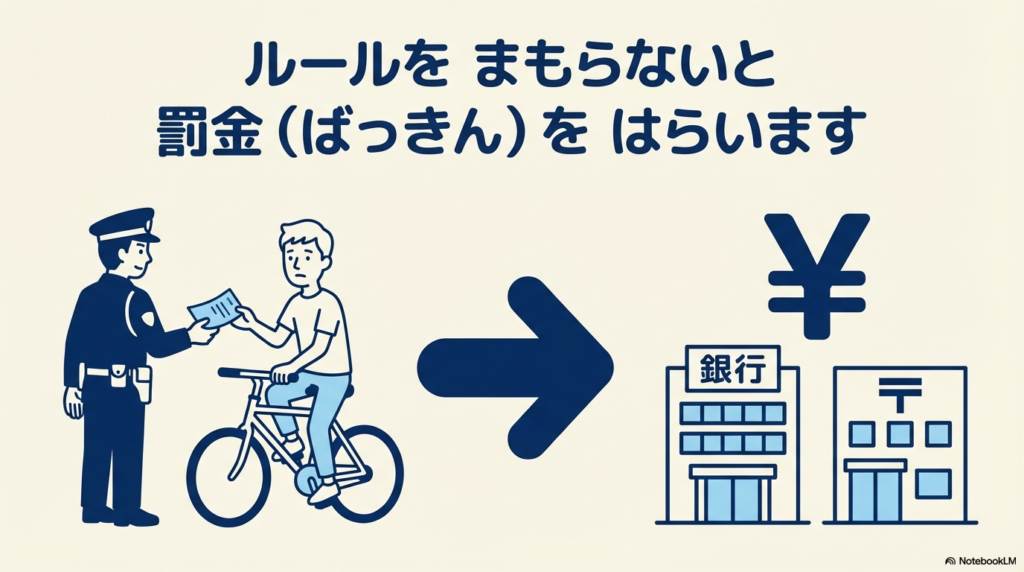 交通ルールを守らないと、警察からお金(反則金:はんそくきん) を払うように言われることがあります。