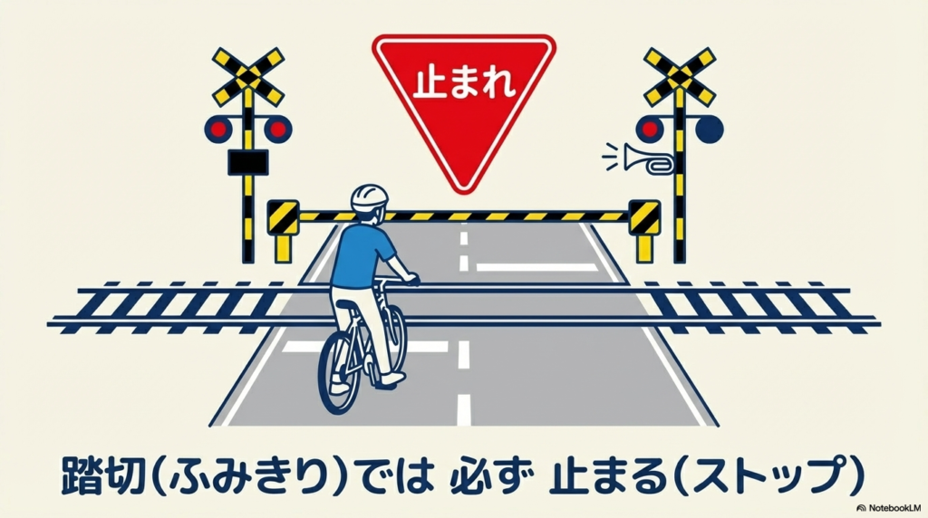 ② 踏切では必ず止まる