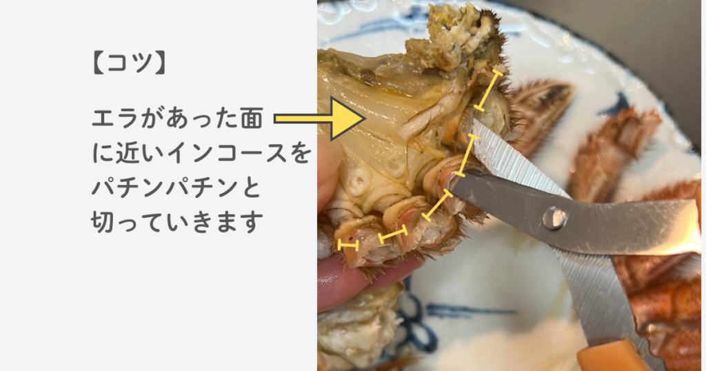 - 毛ガニをさばく|足→ボディ→はさみでカット