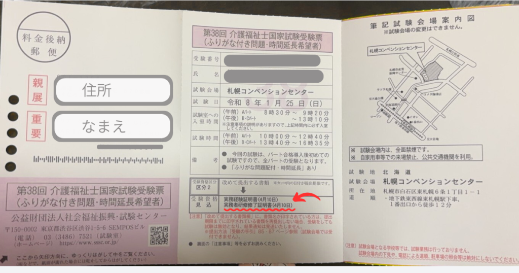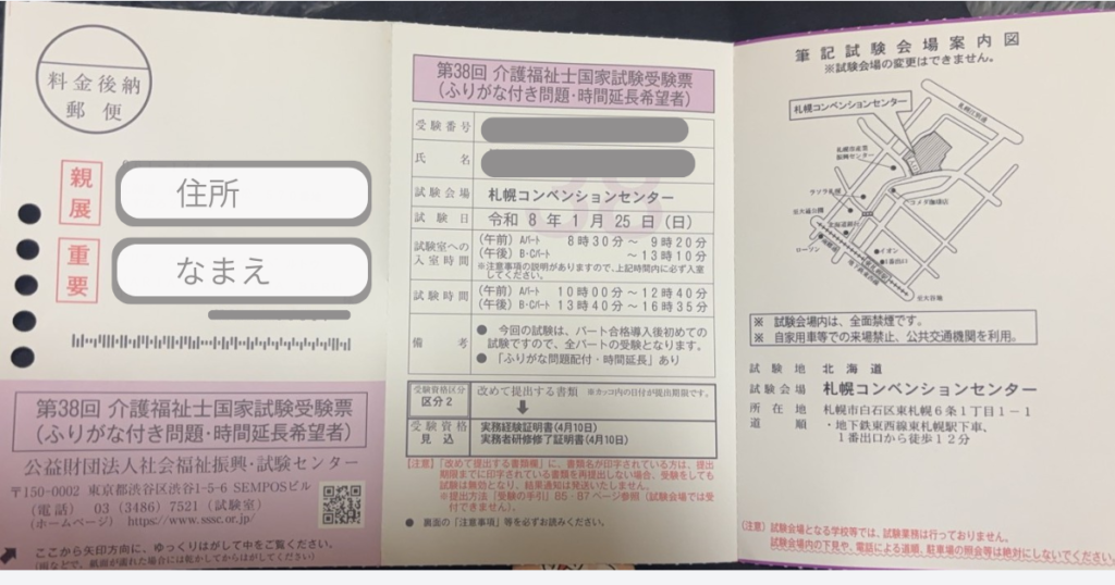 受験票とどきました|介護福祉士国家試験【2026年1月25日】